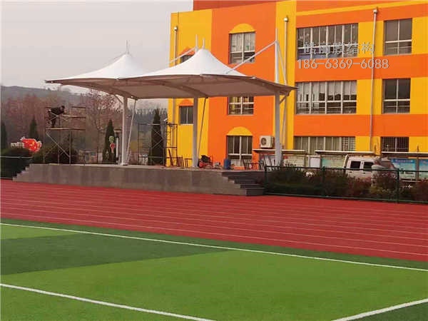 威海市,文登開(kāi)發(fā)區(qū)實(shí)驗(yàn)小學(xué),膜結(jié)構(gòu)看臺(tái),鋼材材質(zhì)Q235,膜布采用浙江星益達(dá)PVDF950克抗芯吸膜布。膜布特點(diǎn),抗腐蝕性抗發(fā)霉抗?jié)B透性超強(qiáng),適合空氣中酸堿度,鹽堿高的沿海,化工環(huán)境中使用。